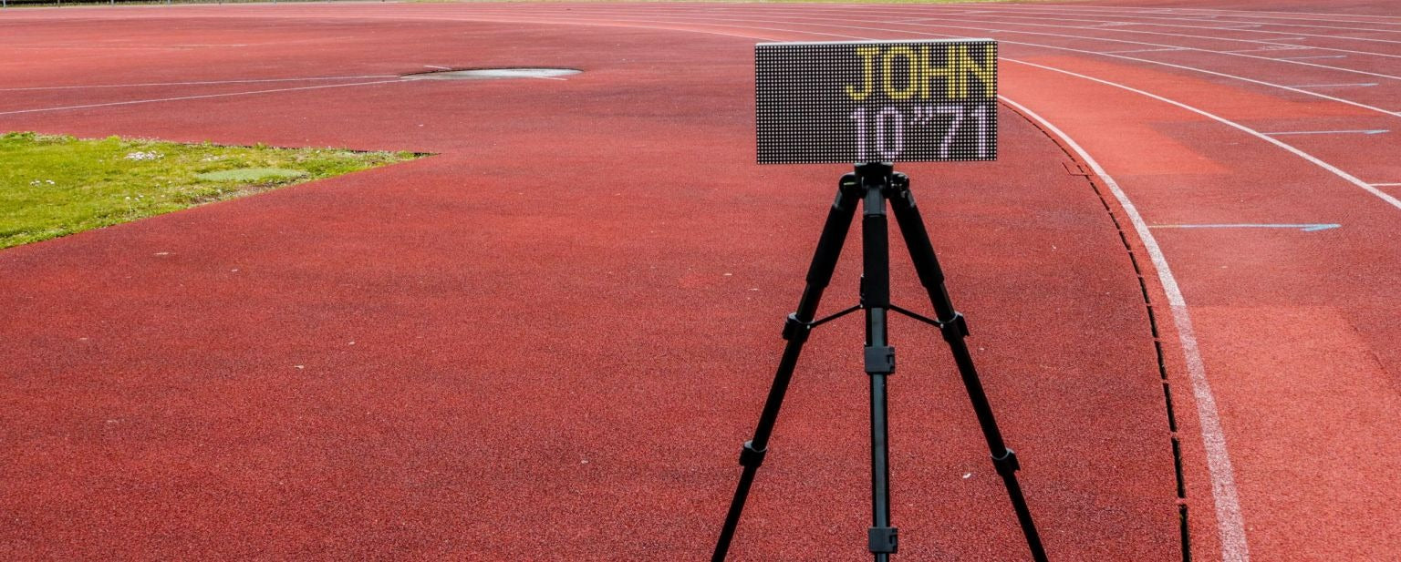 Esta tela de LED exibe em tempo real a identidade do atleta que cruzou a linha de chegada e seu tempo de volta. Visível a 30 metros, permite que treinadores, atletas e o público assistam ao vivo aos resultados da corrida. Esta tela é compatível com FxChip BLE e Relay Coach BLE. Os tempos são transmitidos automaticamente para a tela via Bluetooth.